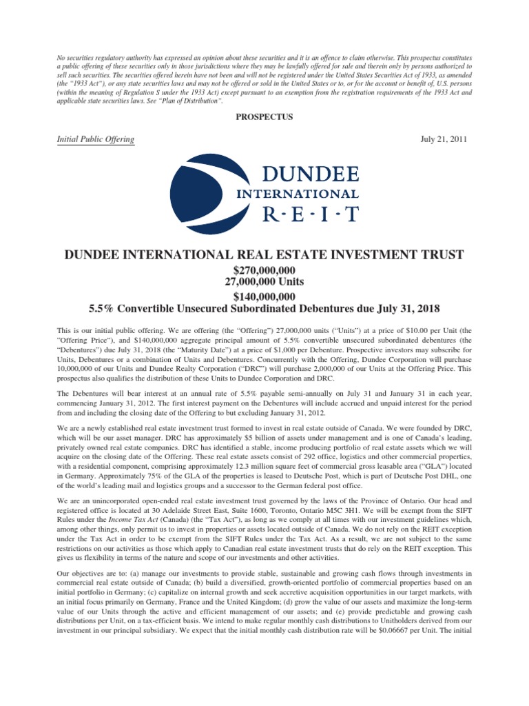 Prospectus Eng Real Estate Investment Trust Securities Finance