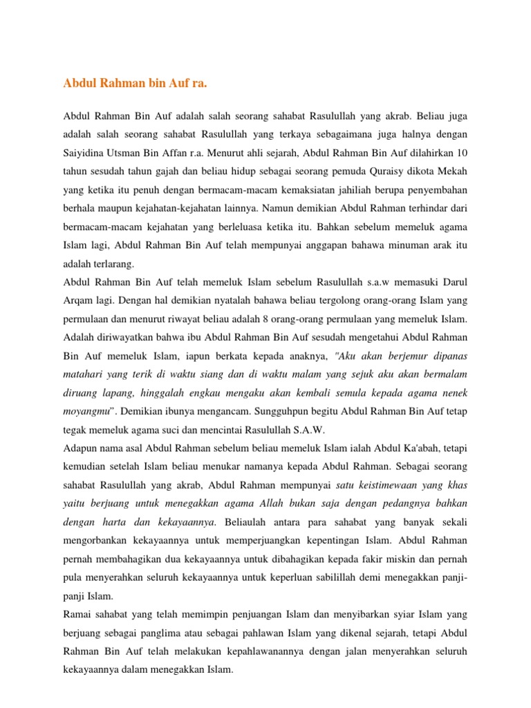 Pdf Rriwayat Abdul Rahman Bin Auf Isromi Janwar Academia Edu