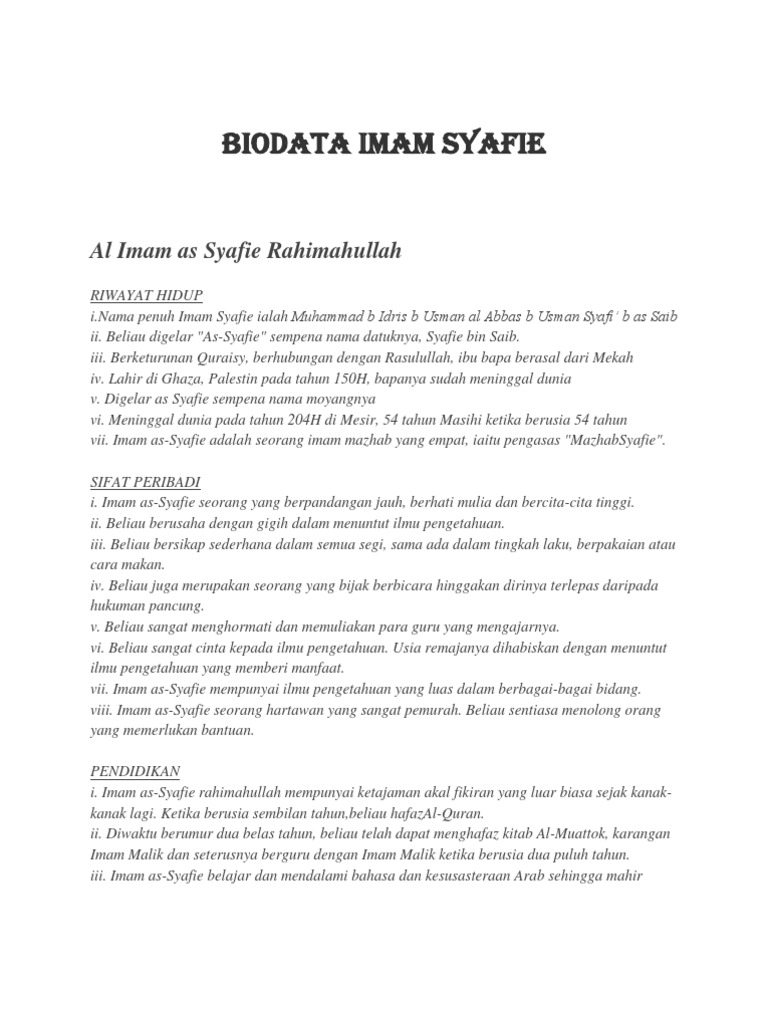 Biodata Imam Syafie