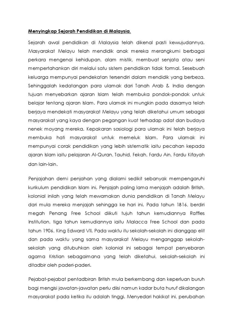 Sejarah Perkembangan Sistem Pendidikan Di Malaysia Alice Pan Academia Edu