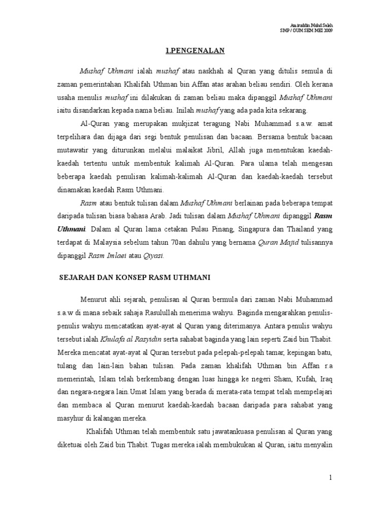 Sejarah Penulisan Rasm Uthmani Download Pdf
