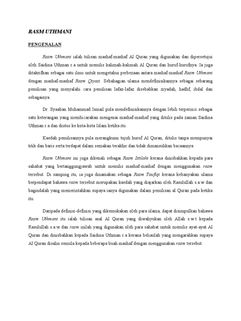 Sejarah Penulisan Rasm Uthmani Doc